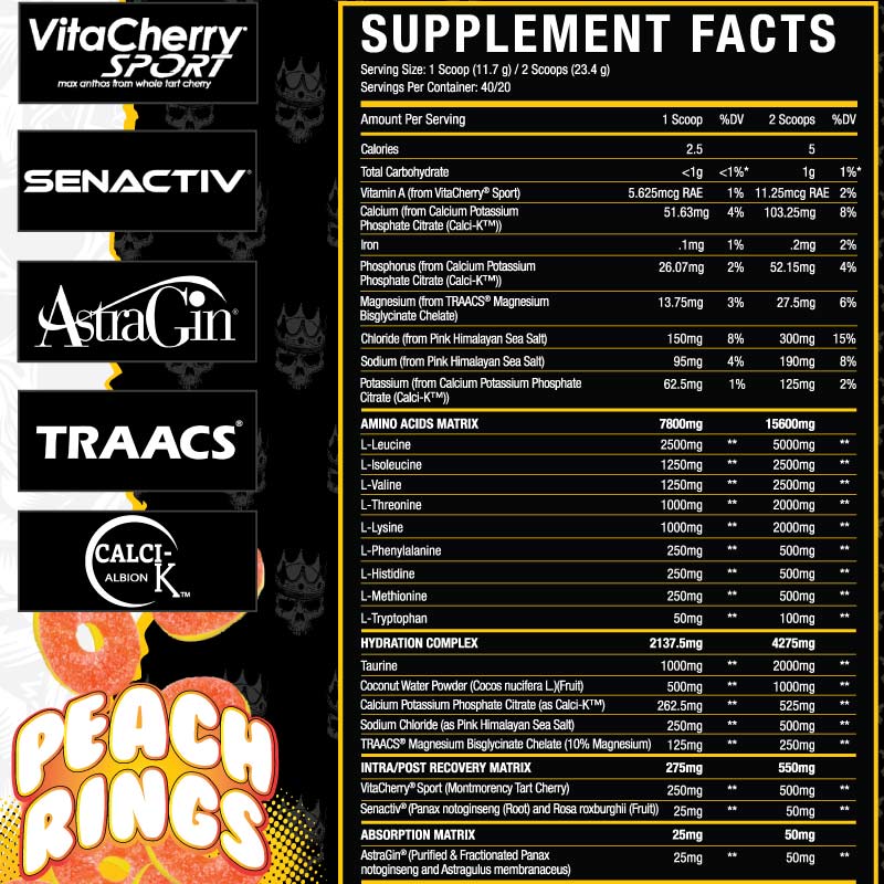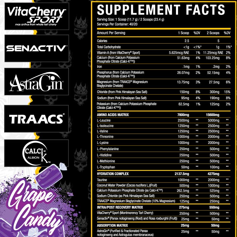 Bomba Intra-Workout provides you with everything your muscles need intra-workout. Bomba contains 7 grams of all 9 essential amino acids (EAA), hydration complex with electrolytes, adaptogens, and even greens (antioxidants). This comprehensive formula makes BOMBA very versatile. Bomba utilizes 17 ingredients to enhance your workouts using a full essential amino acid profile, hyper-hydration ingredients, Senactiv®, Vitacherry®, & AstraGin®.*