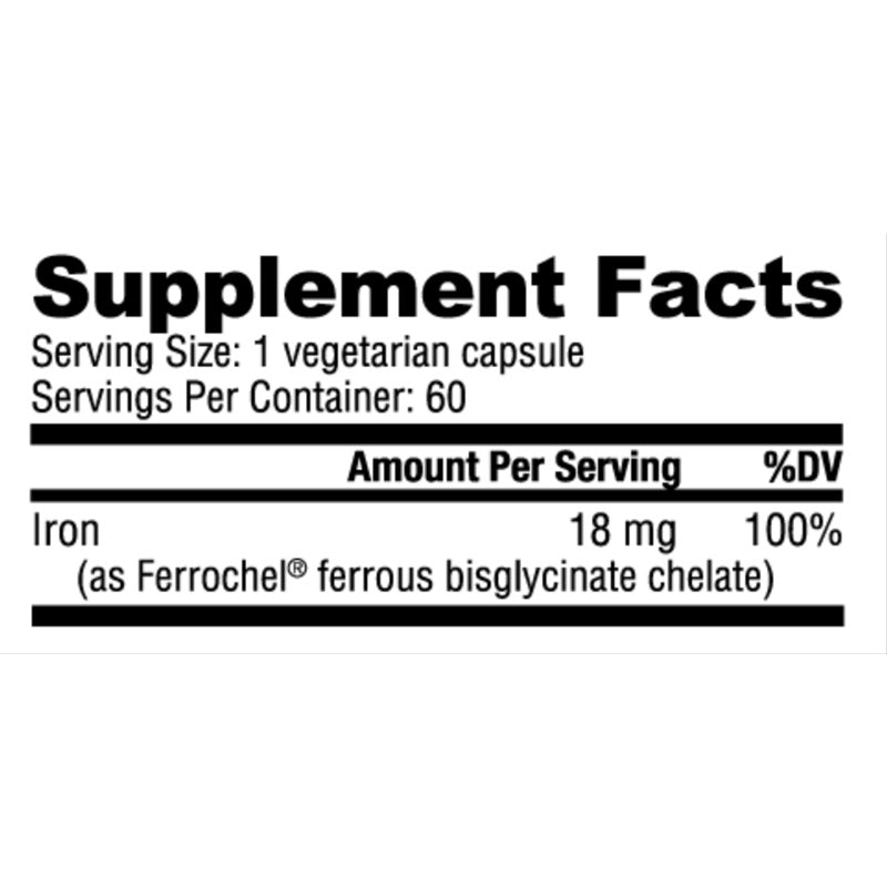 Ferrochel® is a unique, fully-chelated iron supplement formed by binding iron to two organic glycine molecules. It is the most bioavailable and research-supported form of supplemental iron available today.*